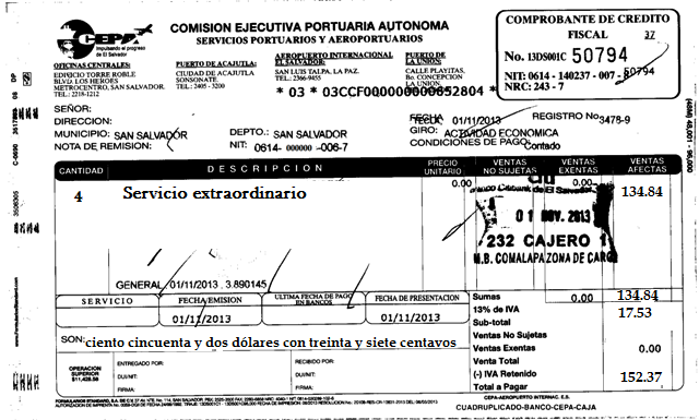 document type Comprobante de pago