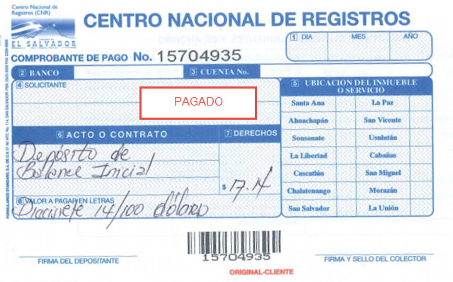 document type Comprobante de pago de búsqueda de anterioridad cancelado