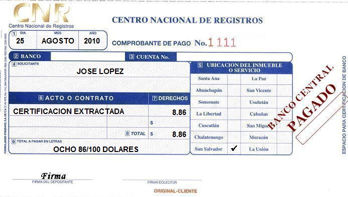 document type Comprobante de pago de derechos para la expedición de la certificación