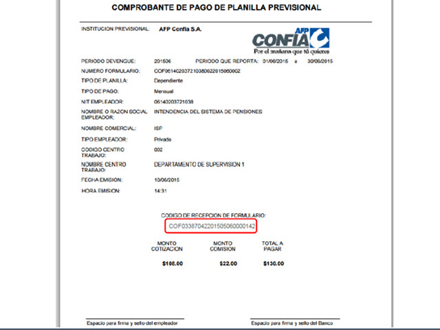 document type Comprobante de pago de planilla previsional (AFP CONFÍA)