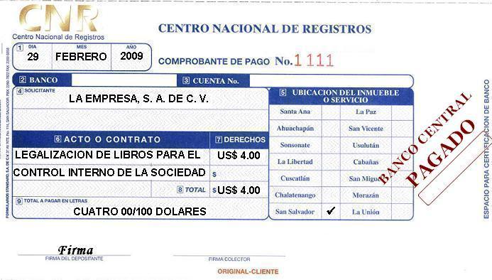 document type Comprobante de pago para la inscripción de la sucursal extranjera