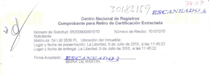 document type Comprobante para retiro de certificación