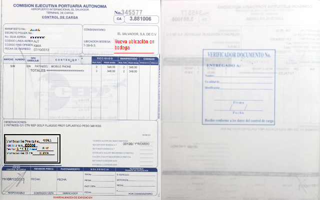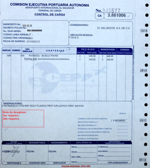 document type Control de carga (PNC)