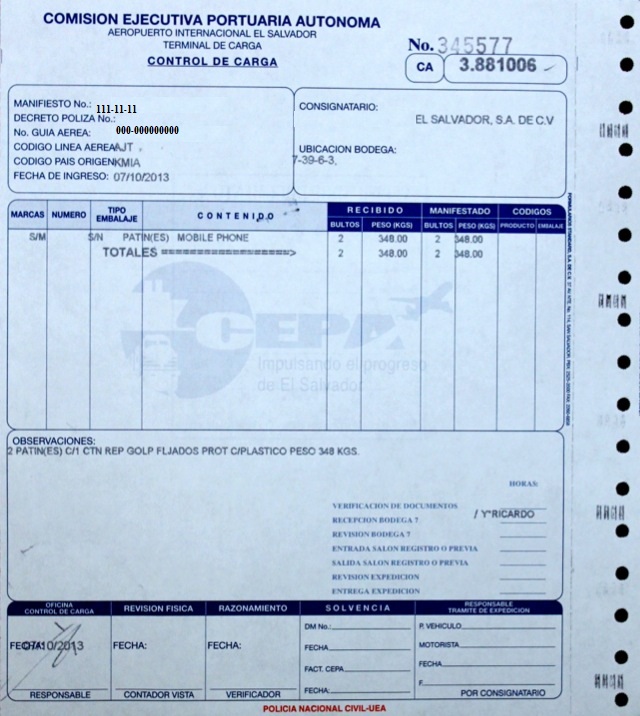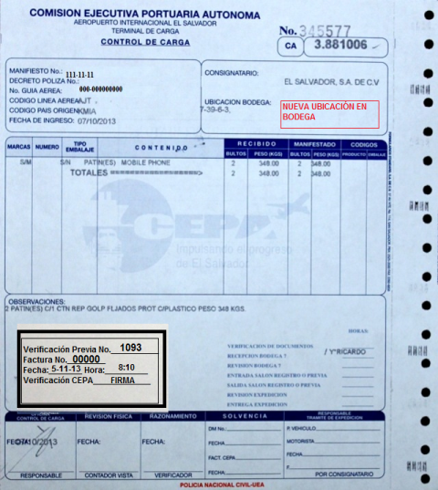 document type Control de carga (Verificaciones previas CEPA)