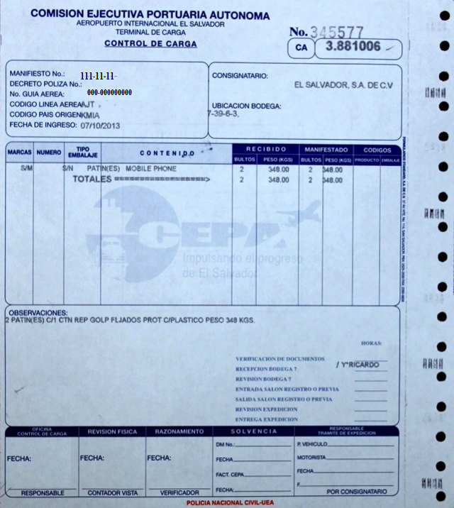 document type Control de carga (PNC)