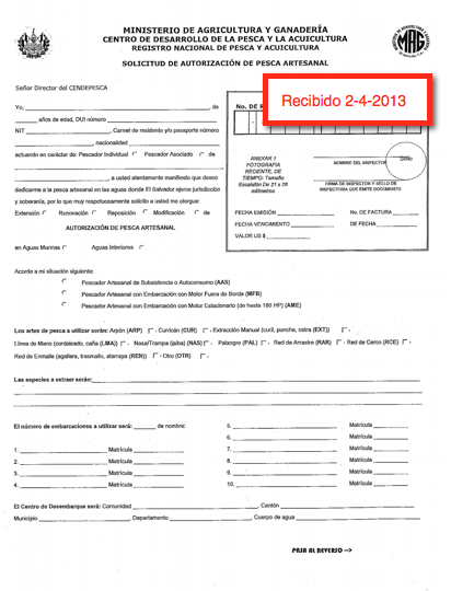 document type Copia de la solicitud de autorización sellado de recibido