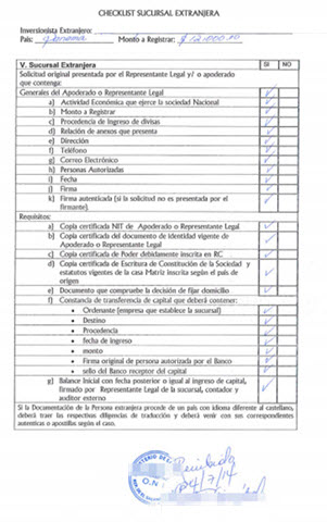 document type Checklist para Persona Jurídica de los documentos presentados para la inscripción