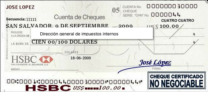 document type Cheque certificado ISSS