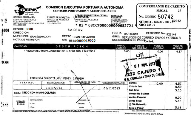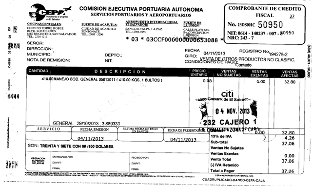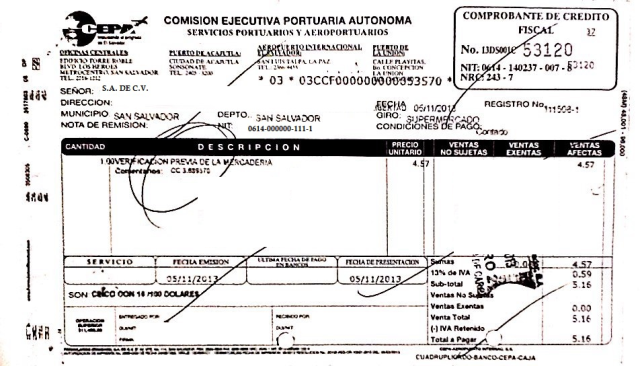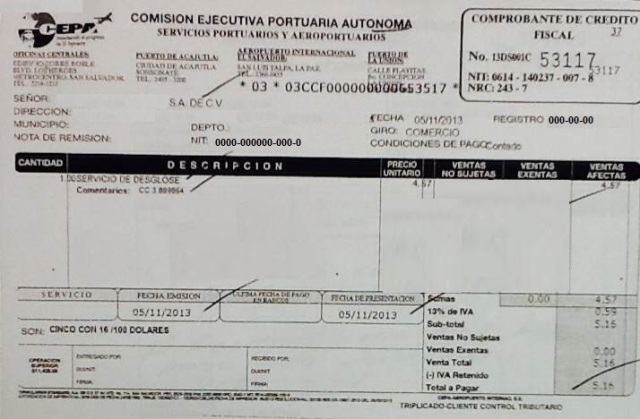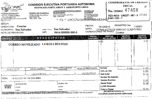 document type Comprobante de crédito fiscal
