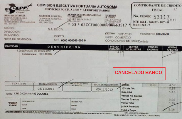 document type Comprobante de crédito fiscal cancelado