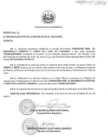 document type Decreto ejecutivo aprobando la inscripción de la entidad