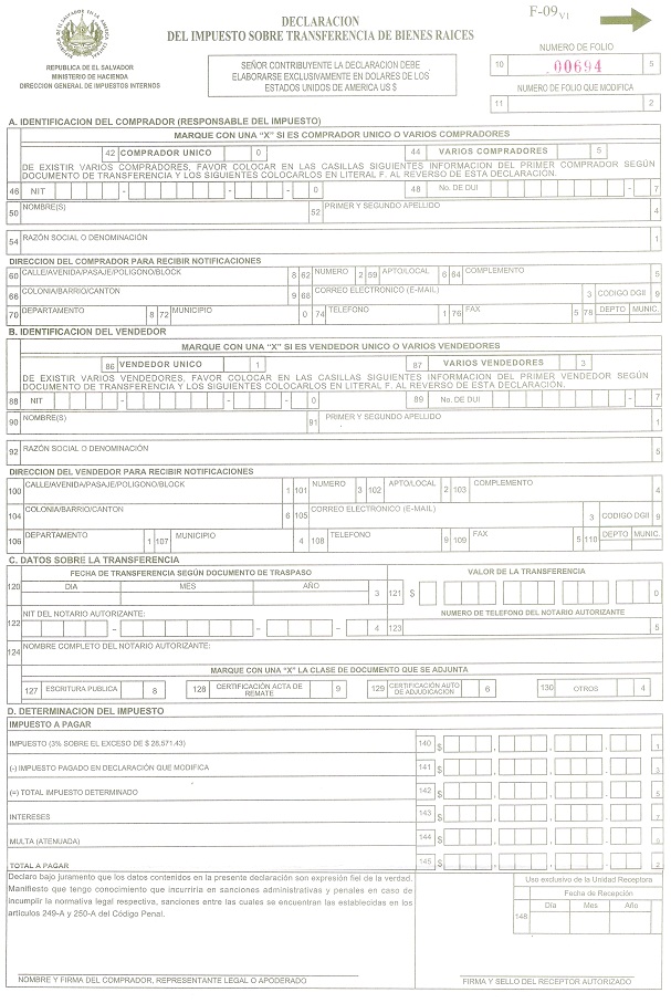 document type Declaración del Impuesto sobre Transferencia de Bienes Raíces - F09