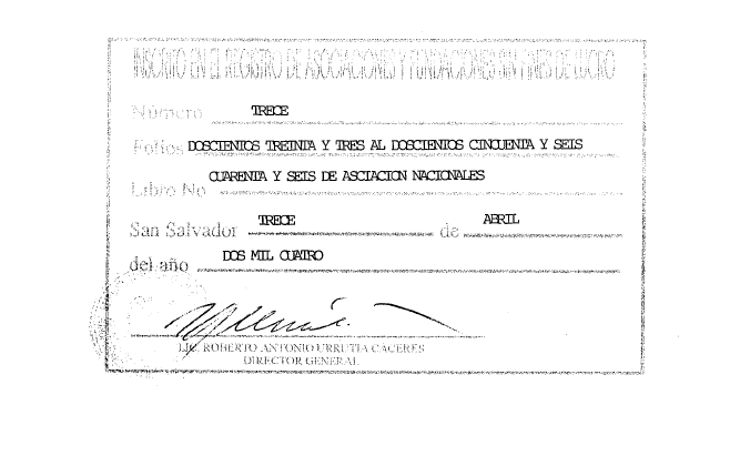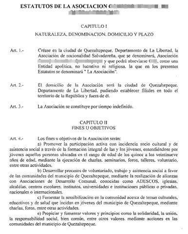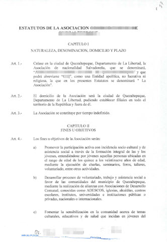 document type Estatutos de constitución de la entidad sellados por el Ministerio de gobernación