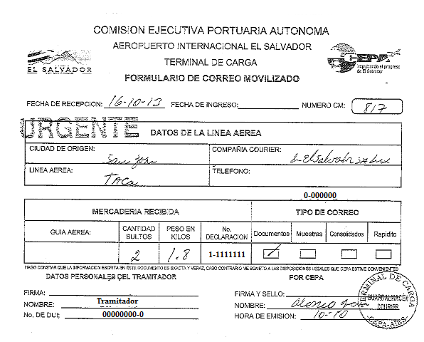 document type Formulario de correo movilizado consolidado