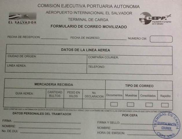 document type Formulario de correo movilizado