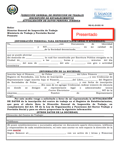 document type Formulario con sello de presentado