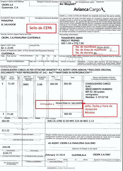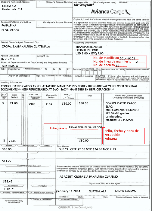 document type Guía master consolidadores de carga sellada