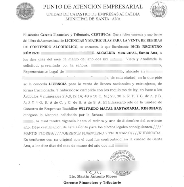 document type Licencia para venta de bebida alcohólica