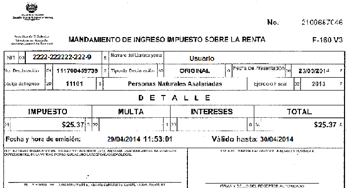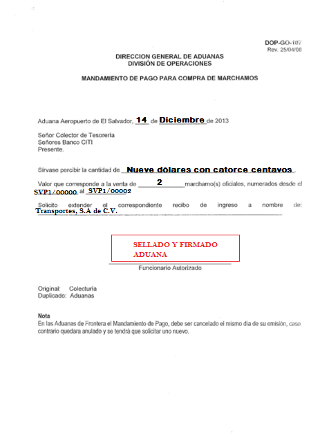 document type Mandamiento de pago para compra de marchamos
