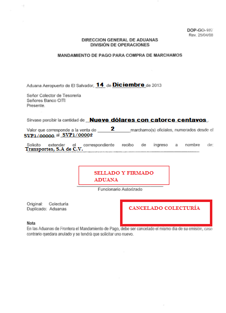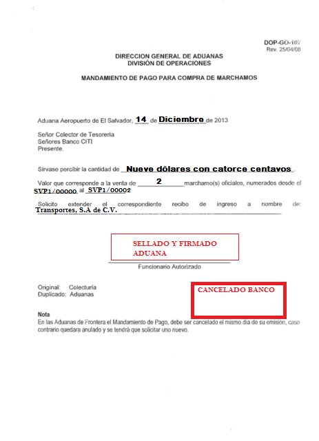 document type Mandamiento de pago para compra de marchamos cancelado