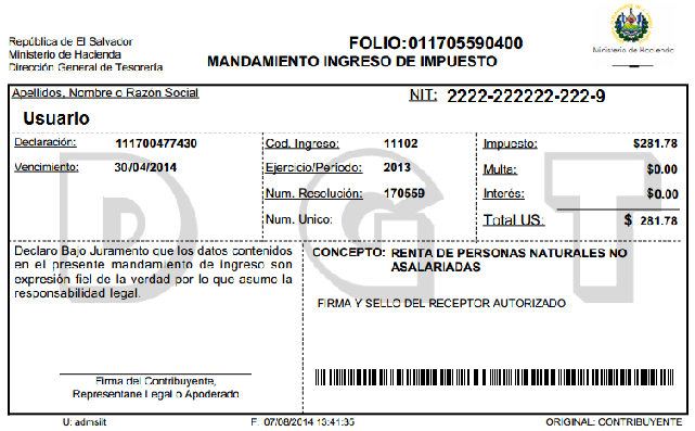 document type Mandamiento de pago para sello de folios