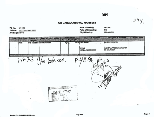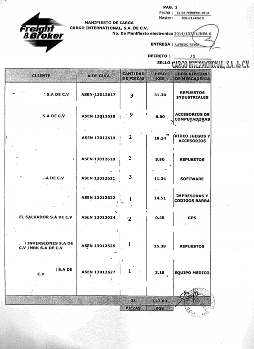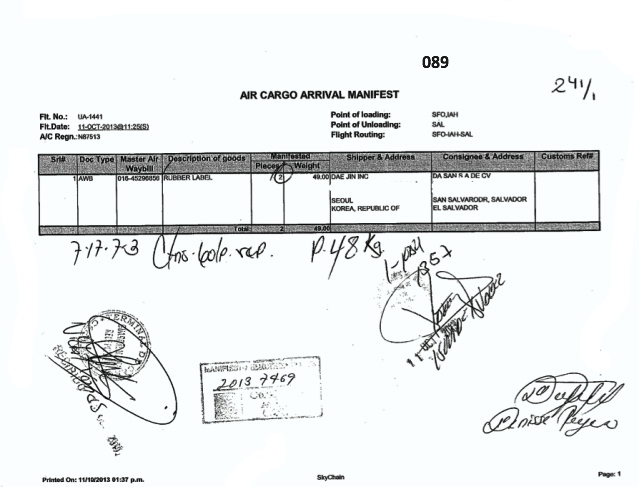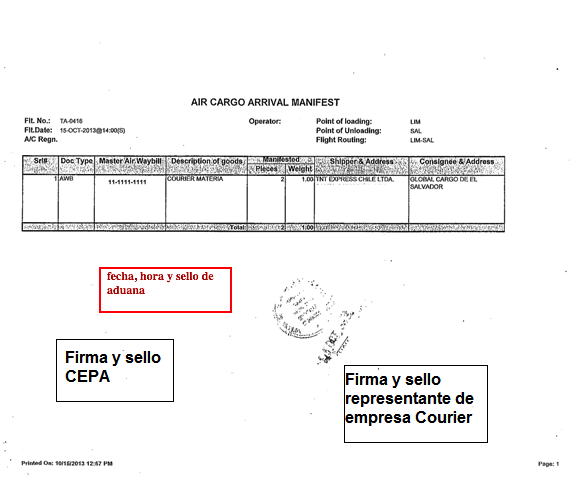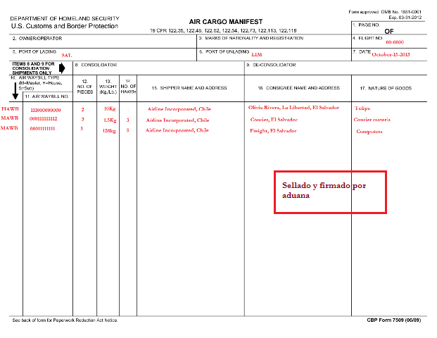 document type Manifiesto de carga aérea sellado