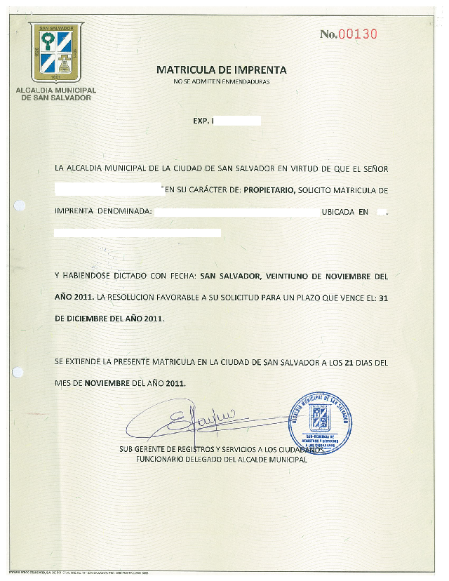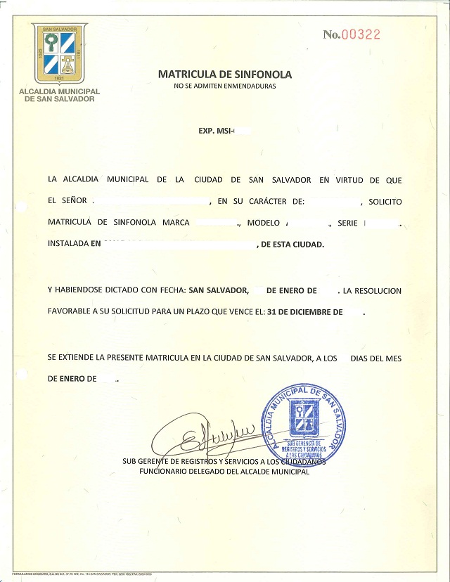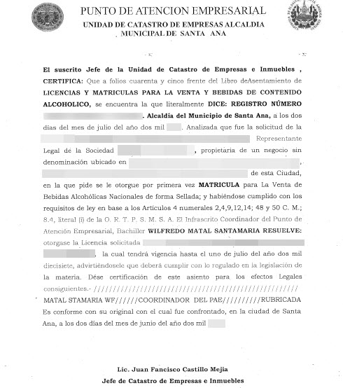 document type Matrícula para la venta de bebidas alcohólicas comerciante individual