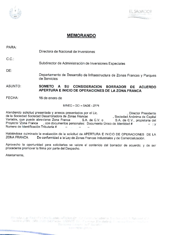 document type Memorándum - resumen ejecutivo Apertura e Inicio de Operaciones