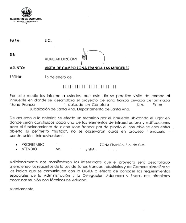 document type Memorándum- informe de visita