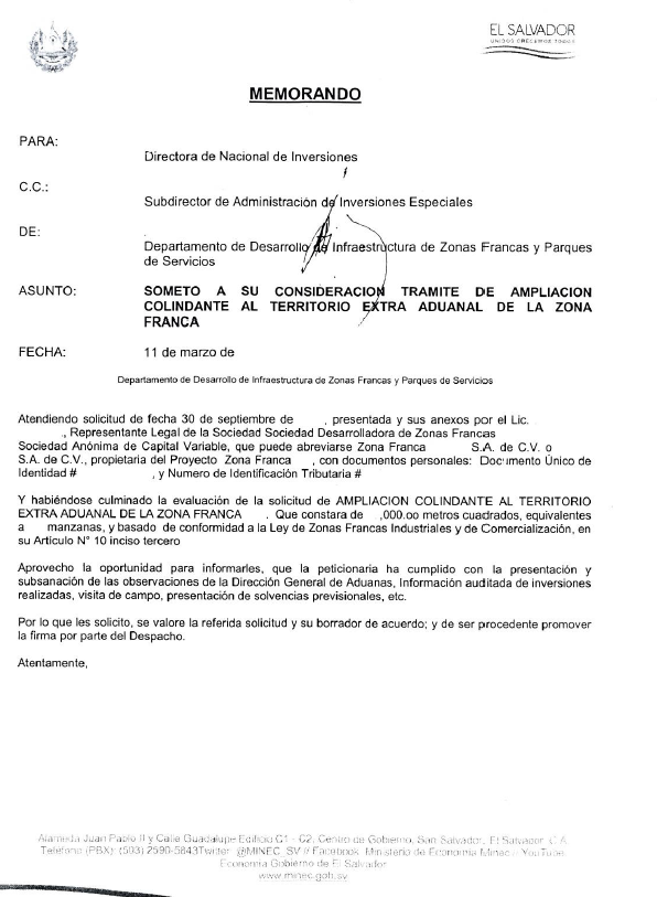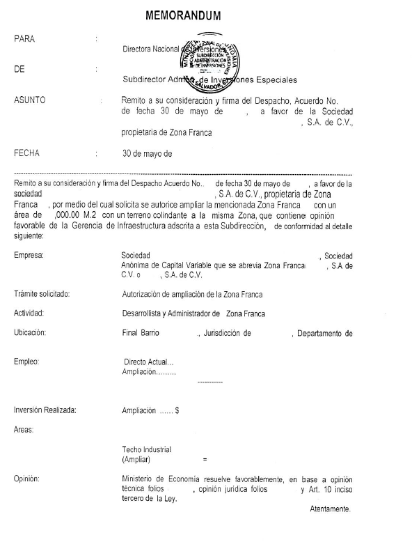 document type Memorándum - remisión del acuerdo Ampliación o Disminución