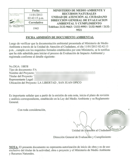 document type Notificación de observaciones técnicas o legales