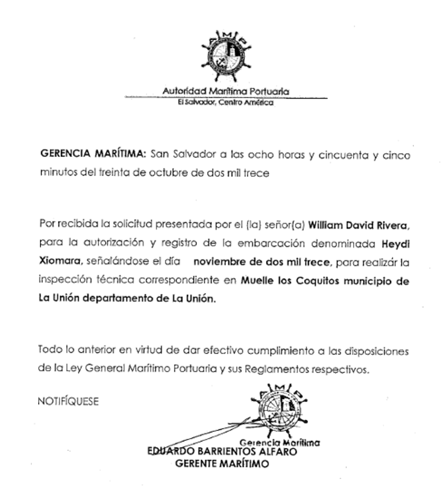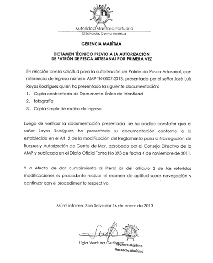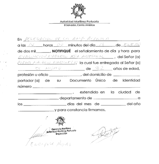 document type Notificación examen de aptitud marinero