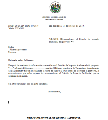 Notificación de observaciones técnicas o legales