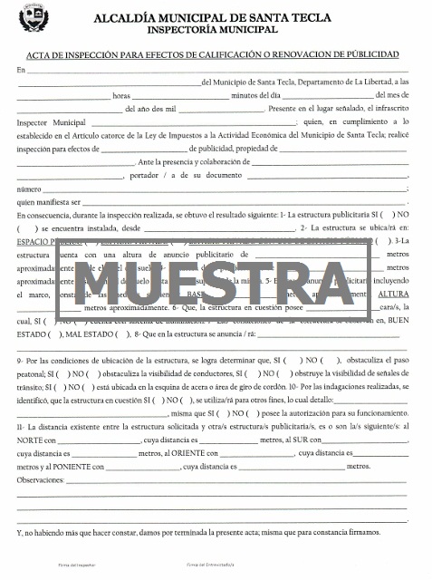 document type Notificación de inspección