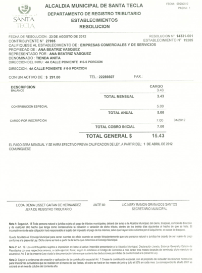 document type Número de cuenta municipal