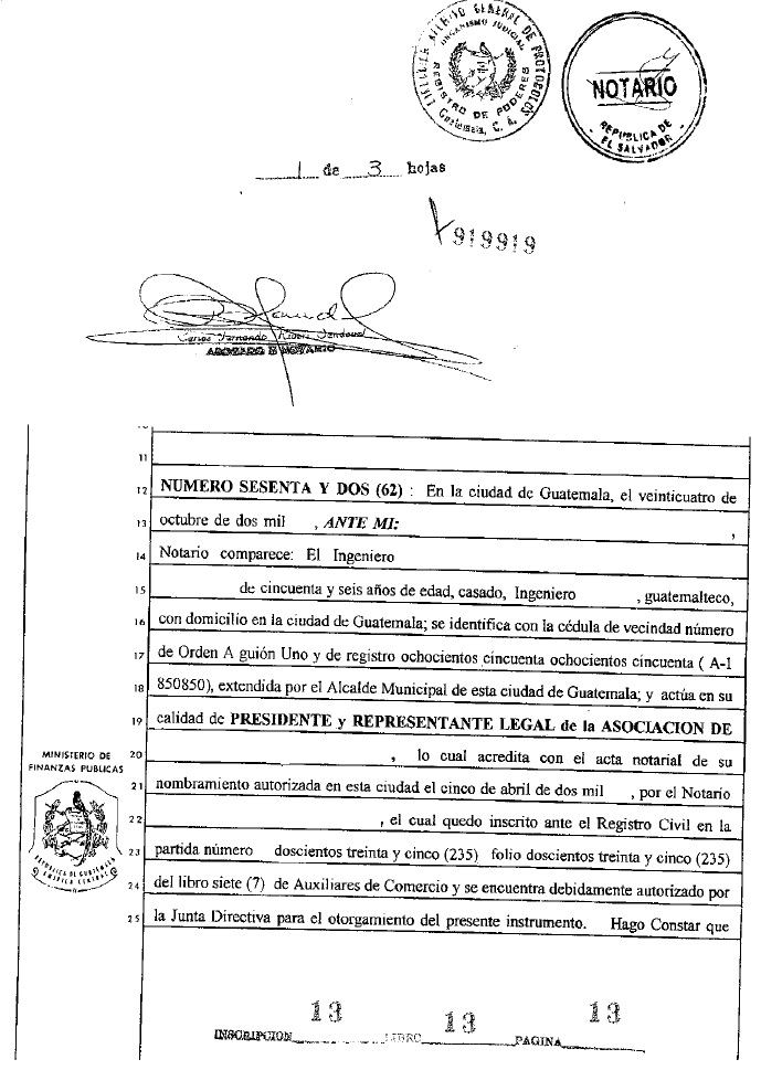 document type Poder otorgado para representar la entidad extranjera inscrito en el Registro certificado por el MH