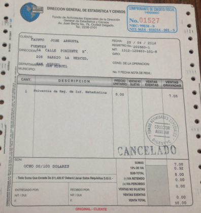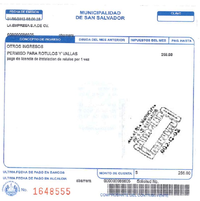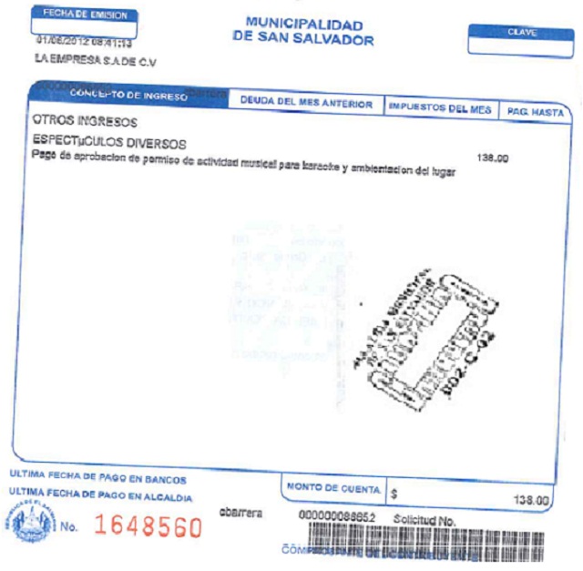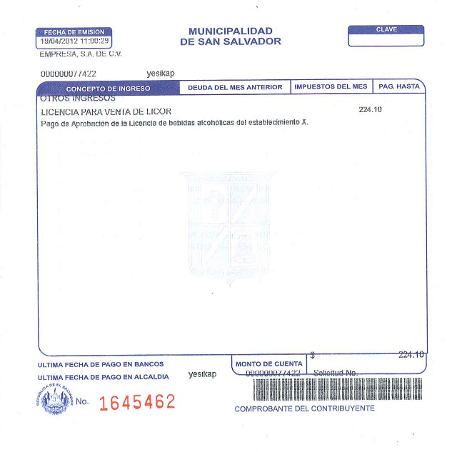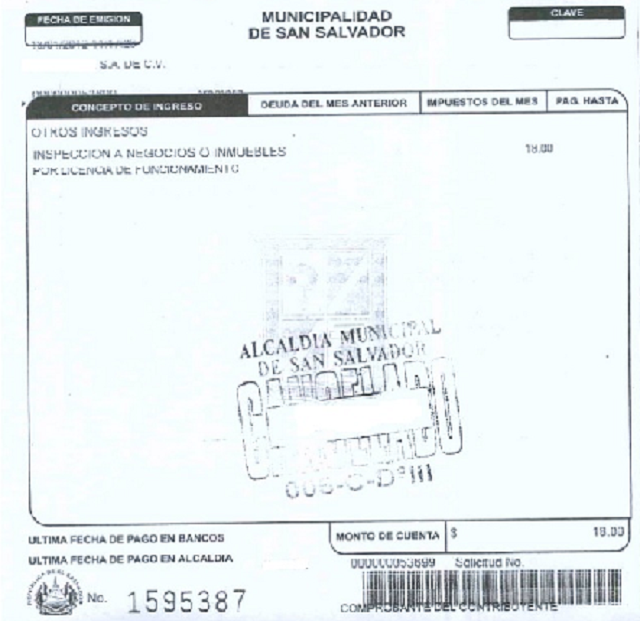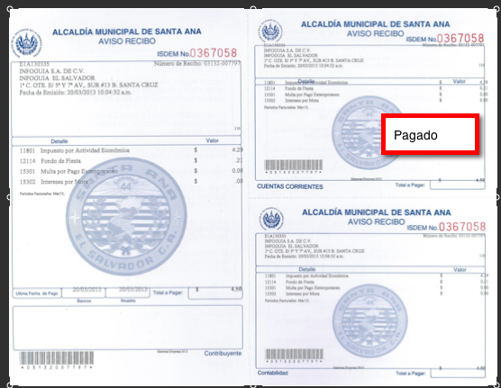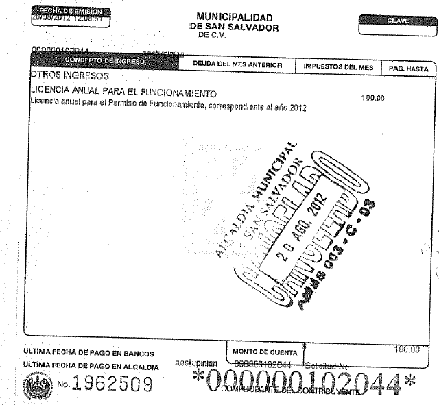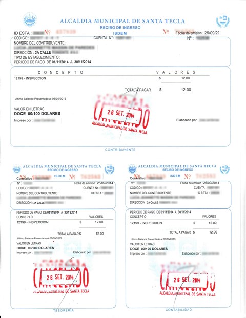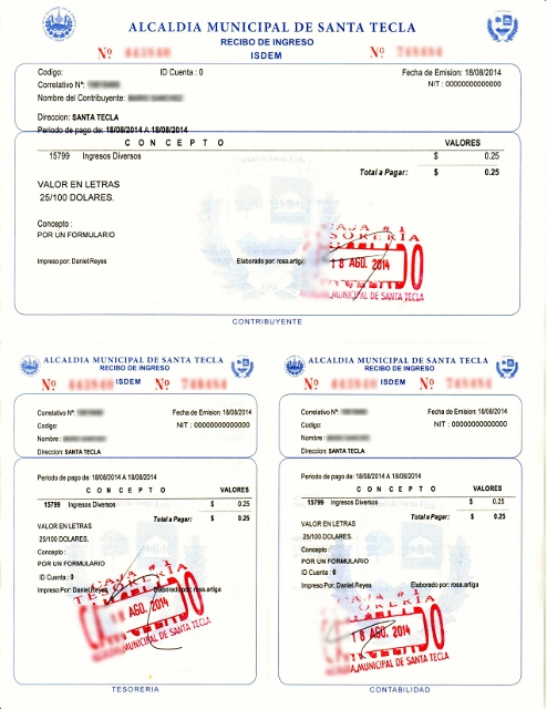 document type Recibo de pago con firma y sello de la Alcaldía Municipal