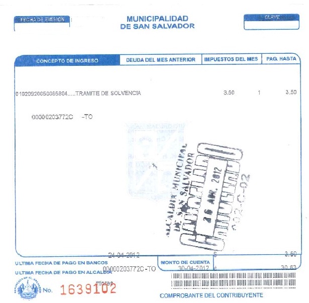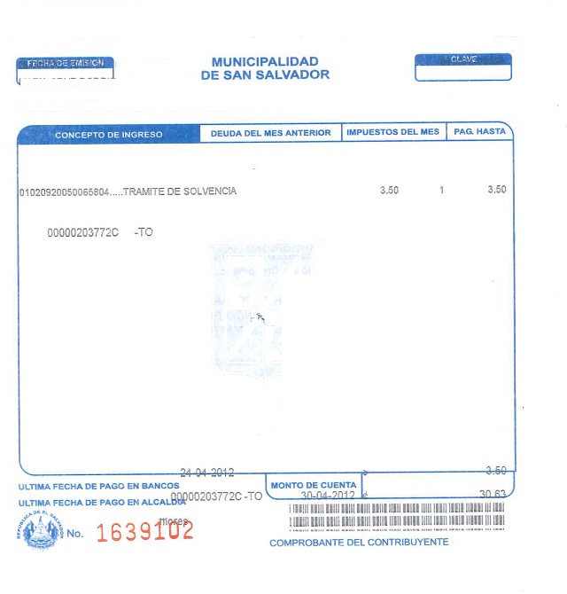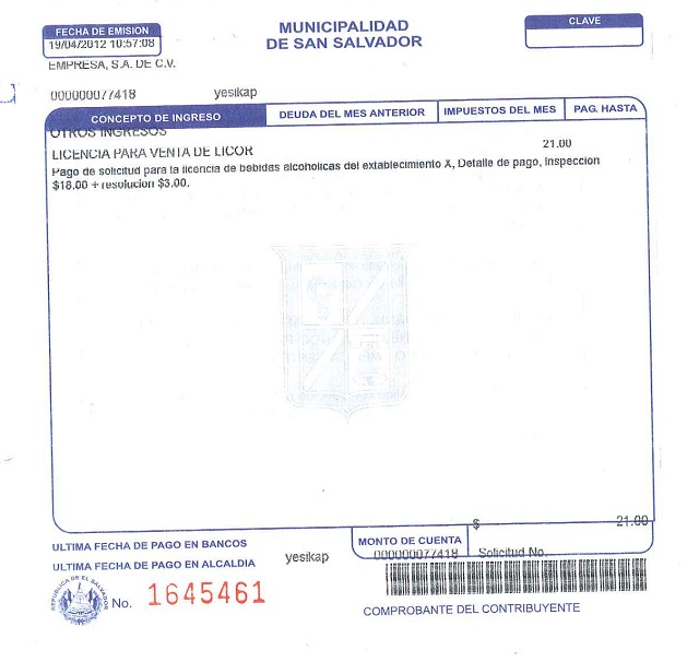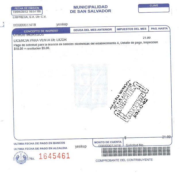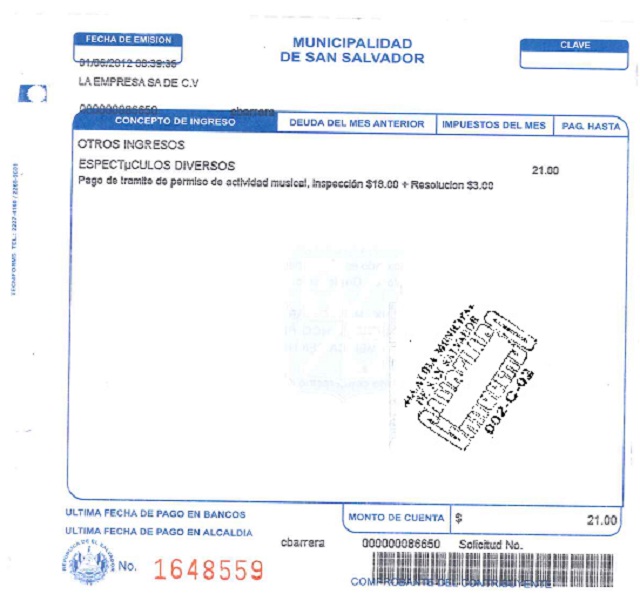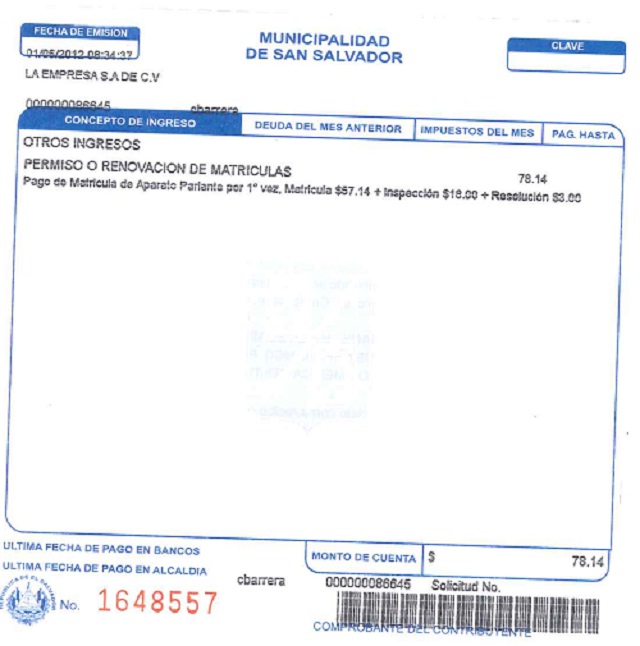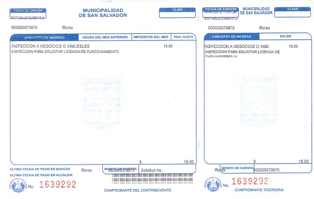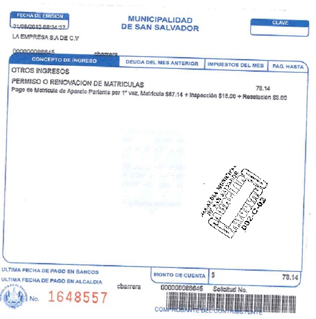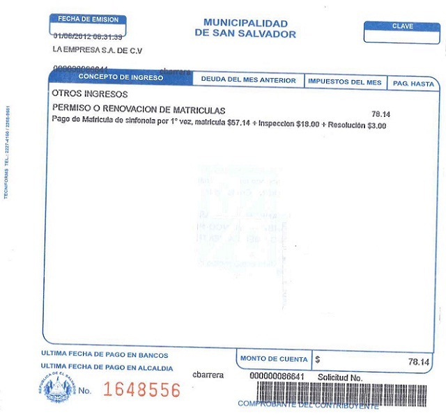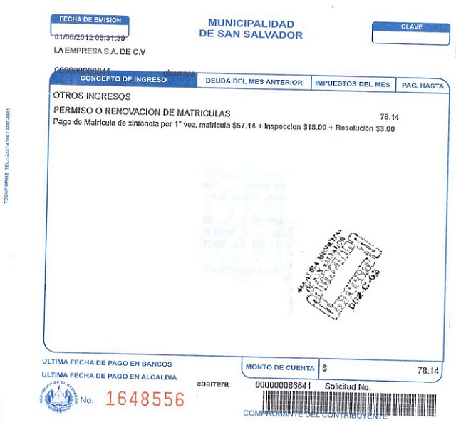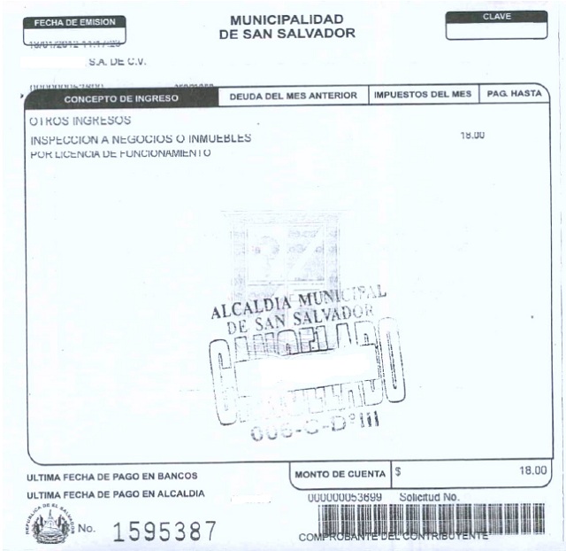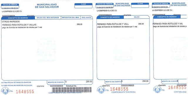 document type Recibo de pago de licencia para la instalaciòn de ròtulos