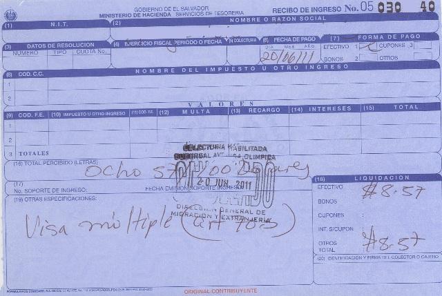 document type Recibo de pago de visa múltiple provisional