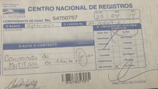 document type Recibo de pago de trámite solvencia cancelado
