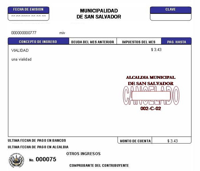 document type Recibo de pago del impuesto de vialidad cancelado