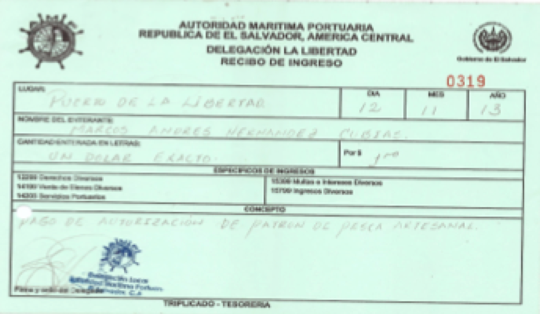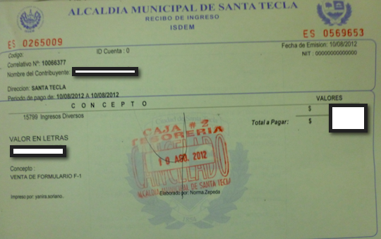 document type Recibo de trámite de licencia cancelado