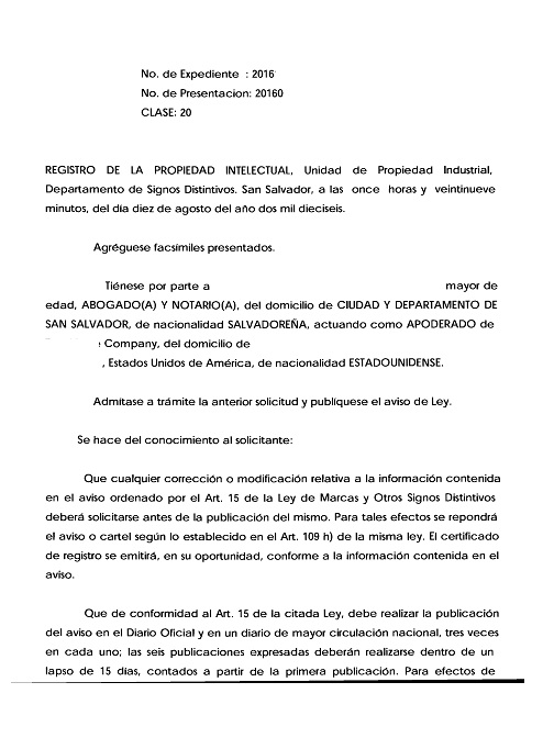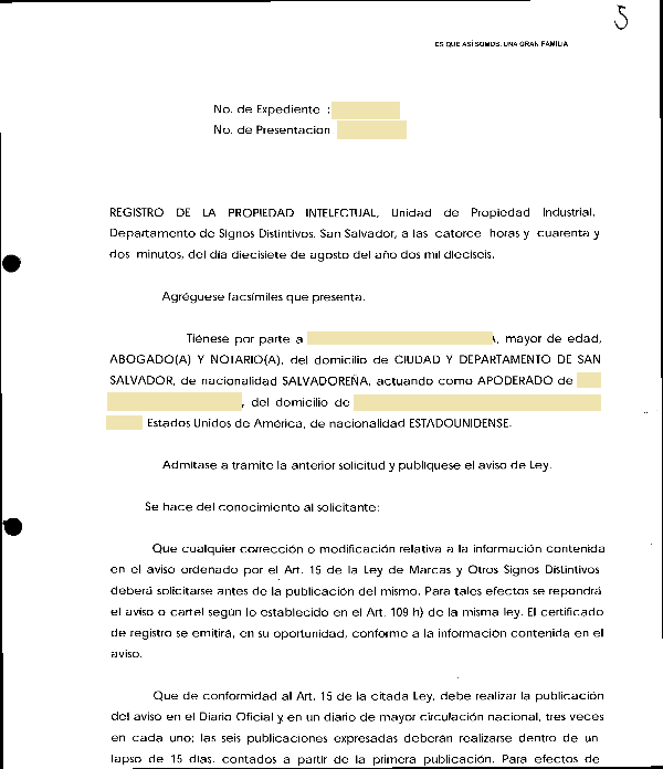 document type Resolución admitiendo u observando lasolicitud de marca