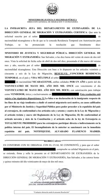 document type Resolución de residencia temporal y trabajo