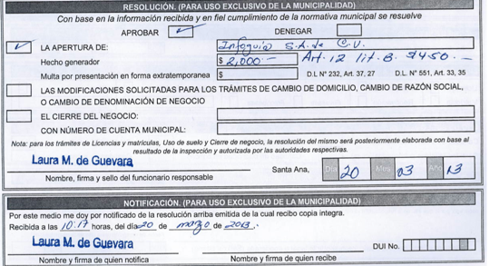 document type Resolución de apertura de negocio
