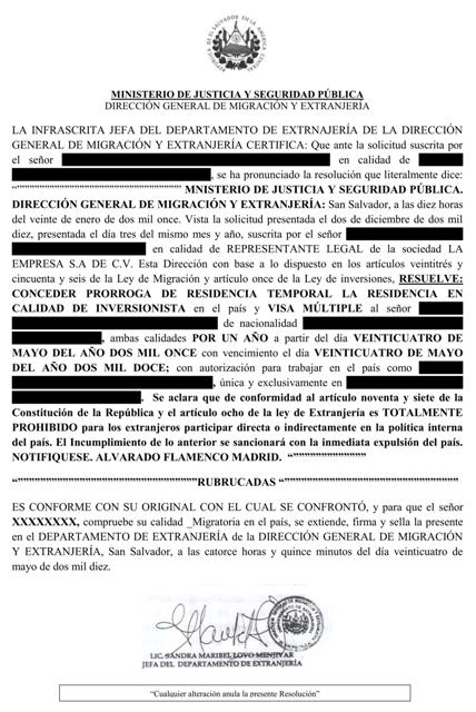 document type Resolución de prórroga de residencia temporal inversionista