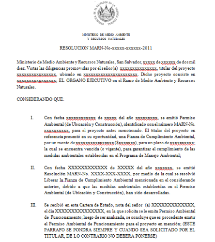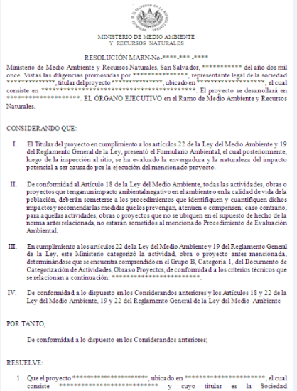 document type Resolución de permiso ambiental del ministerio de medio ambiente y recursos naturales