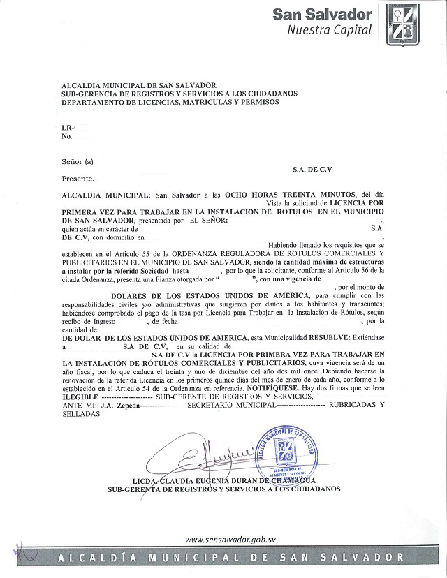 document type Resolución de licencia para la instalación de rótulos