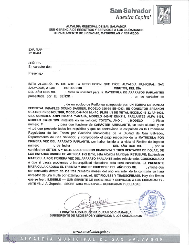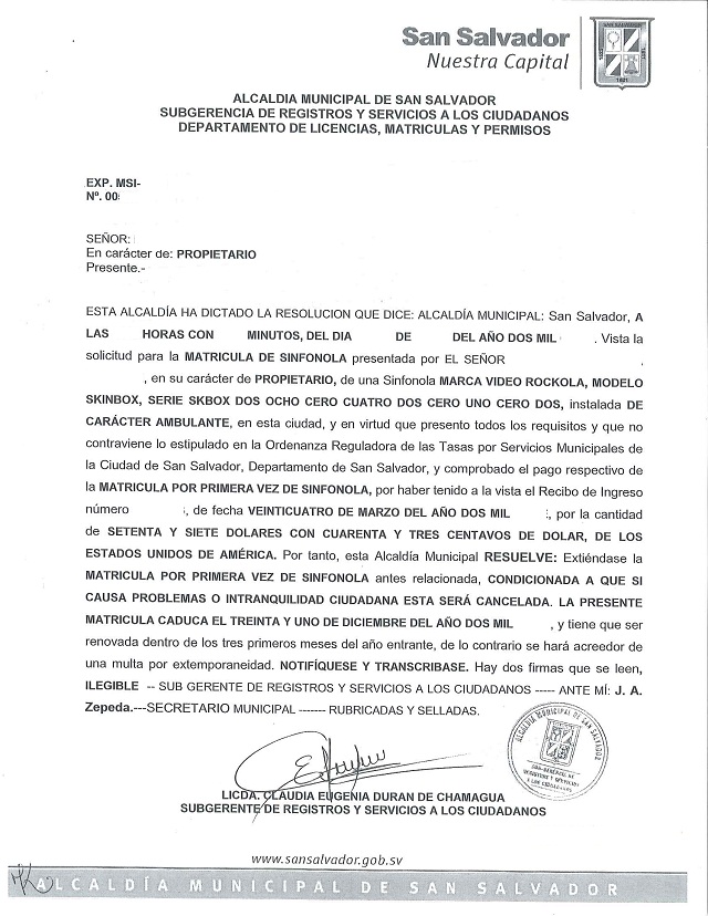 document type Resolución de matricula de sinfonola
