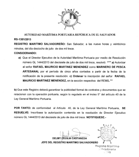document type Resolución de inscripción marinero